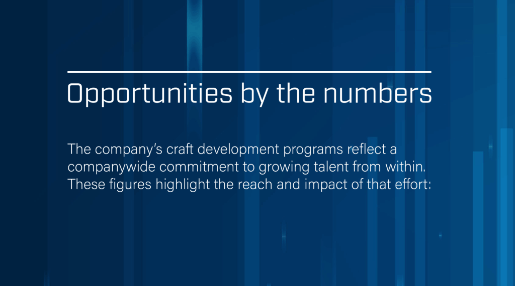 For high-performing craft employees, programs like Key Craft offer advanced technical training and leadership development. Those chosen by project leaders often go on to take supervisory roles.